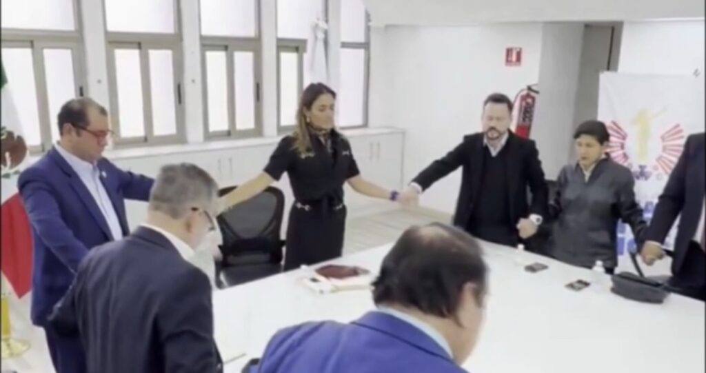 El evento, documentado en video, contraviene la laicidad del Estado mexicano, principio consagrado en la Constitución y en la Ley de Asociaciones Religiosas y Culto Público.
