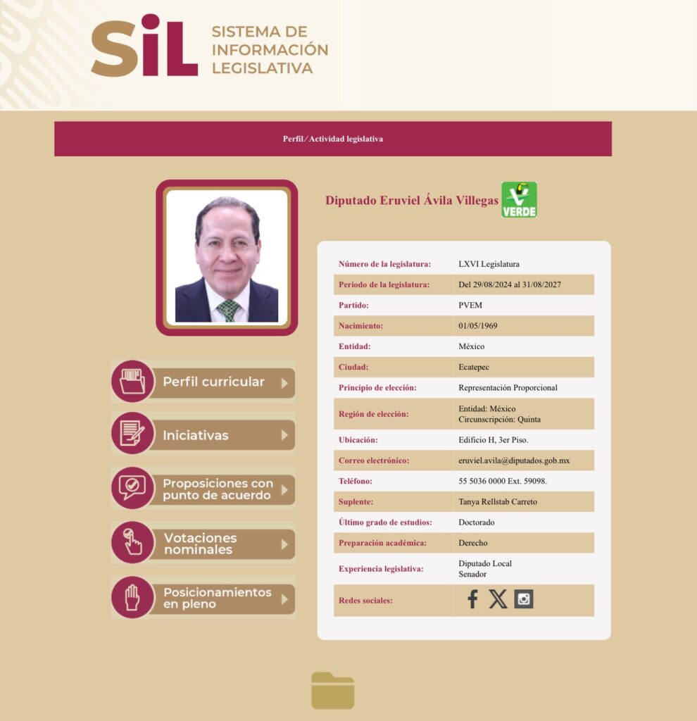 El caso golpea además a un personaje con larga trayectoria política. Eruviel Ávila fue gobernador del Estado de México entre 2011 y 2017, y también ha sido senador, diputado federal y alcalde de Ecatepec. Actualmente es diputado federal del PVEM en la LXVI Legislatura.
