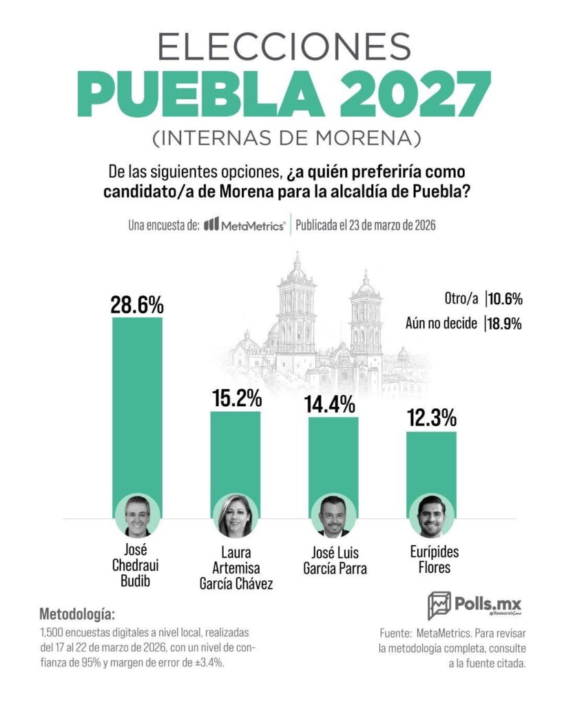De acuerdo con la más reciente encuesta de MetaMetrics, Eurípides Flores registra 12.3% de preferencia, colocándose ya en el radar competitivo rumbo a la candidatura por la alcaldía de Puebla.