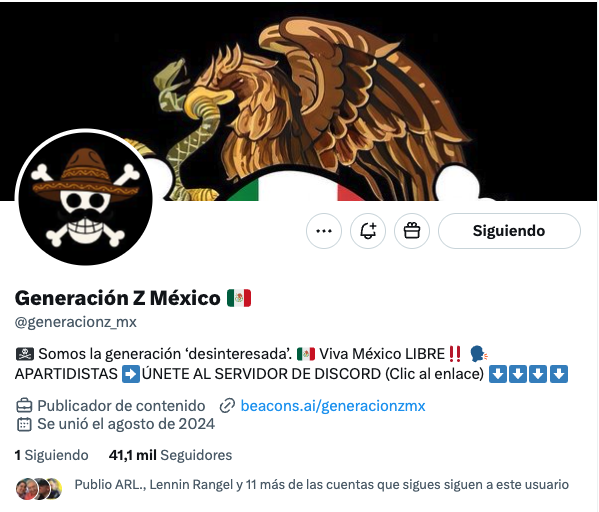 De acuerdo con registros del propio Discord, el colectivo original de Generación Z México aún se encuentra debatiendo su ideología y objetivos, mientras algunos de sus canales han sido infiltrados por operadores ligados al PAN, entre ellos Miguel de Samaniego y Enrique Mireles, quienes fungen como voceros de dicho partido y han impulsado la cuenta falsa en X, misma que ya suma más de 40 mil seguidores.