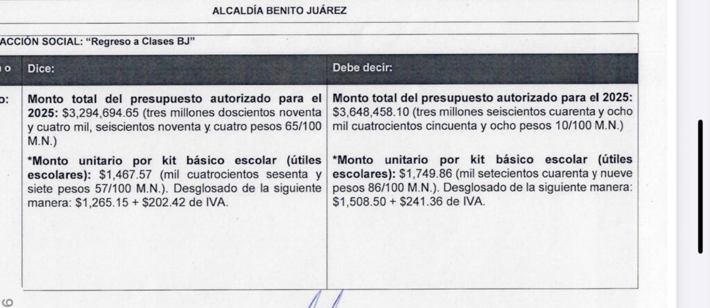 - La alcaldía Benito Juárez pagó $1,749.86 por cada kit escolar. Sin embargo, el costo real en el mercado apenas ronda los $708, denunció Consejala de Morena.