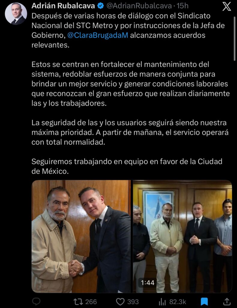 • El director del sistema, Adrián Rubalcava, confirmó acuerdos con el sindicato tras diálogo instruido por Clara Brugada.