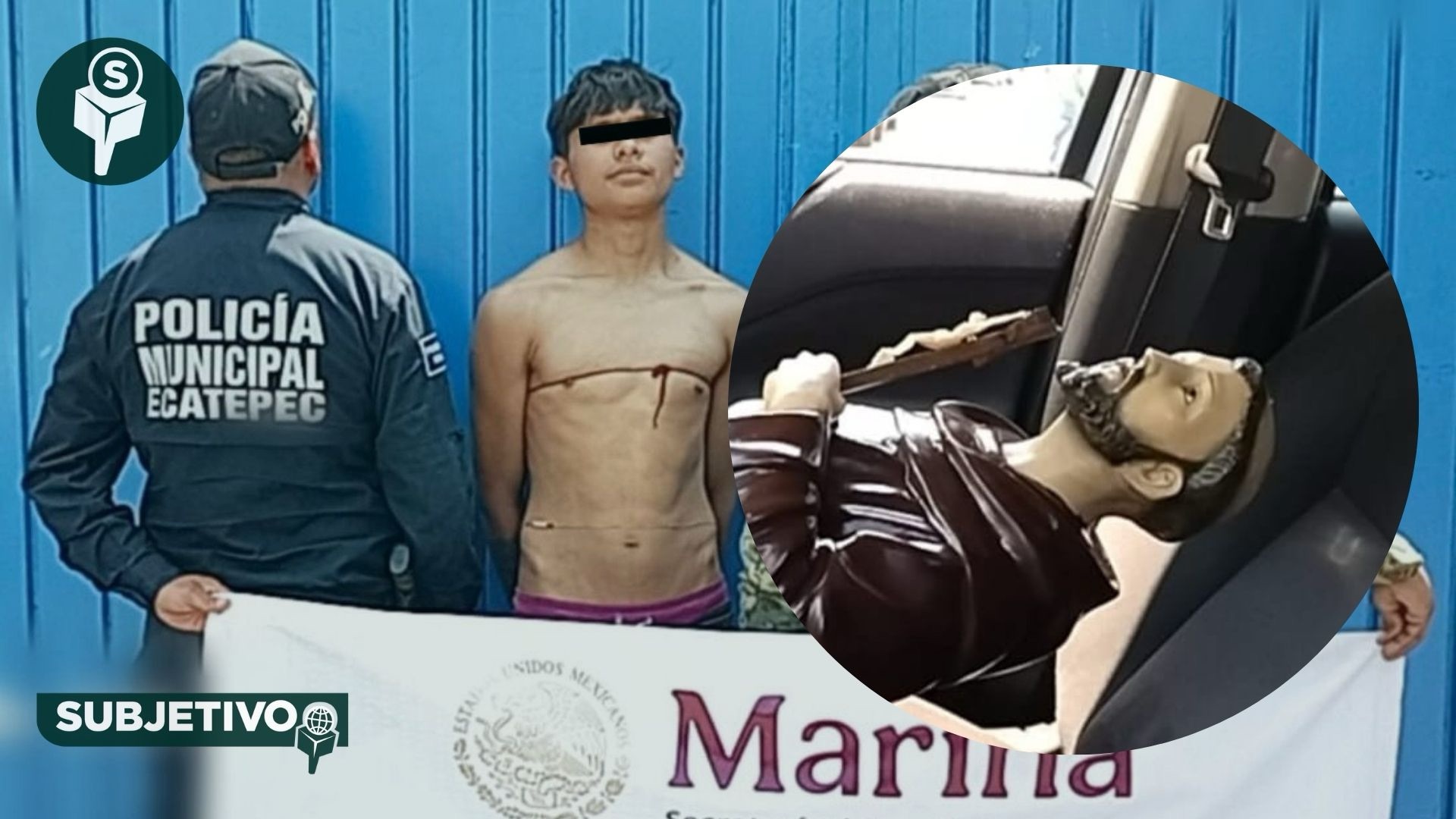 La Policía Municipal de Ecatepec detuvo a Jaziel Alejandro “N”, de 19 años, luego de que vecinos lo señalaran por presuntamente ingresar a la Parroquia de San Vicente de Paul, en la colonia El Chamizal, y sacar una imagen religiosa de San Francisco de Asís.