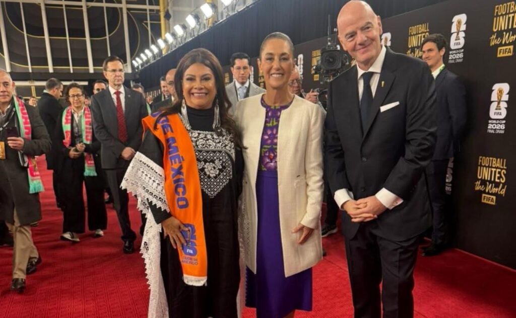 La mandataria asistió al Centro Kennedy como líder de uno de los tres países anfitriones del torneo, que por primera vez reunirá a 48 selecciones. Llegó acompañada de la jefa de Gobierno de la Ciudad de México, Clara Brugada, fortaleciendo el mensaje político: México organiza y también dirige.
