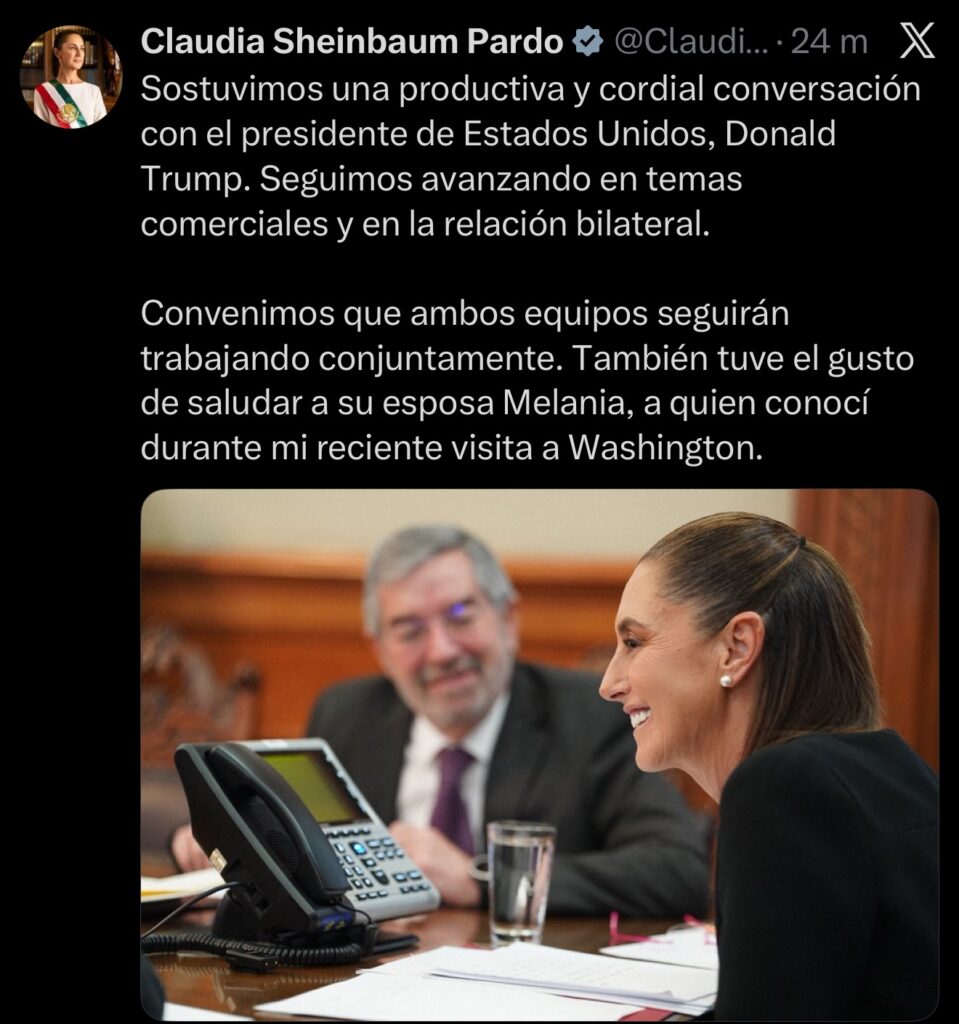 - Claudia Sheinbaum sostuvo una conversación directa y cordial con Donald Trump. México dialoga, avanza en comercio y cuida la relación bilateral sin subordinación ni estridencias.