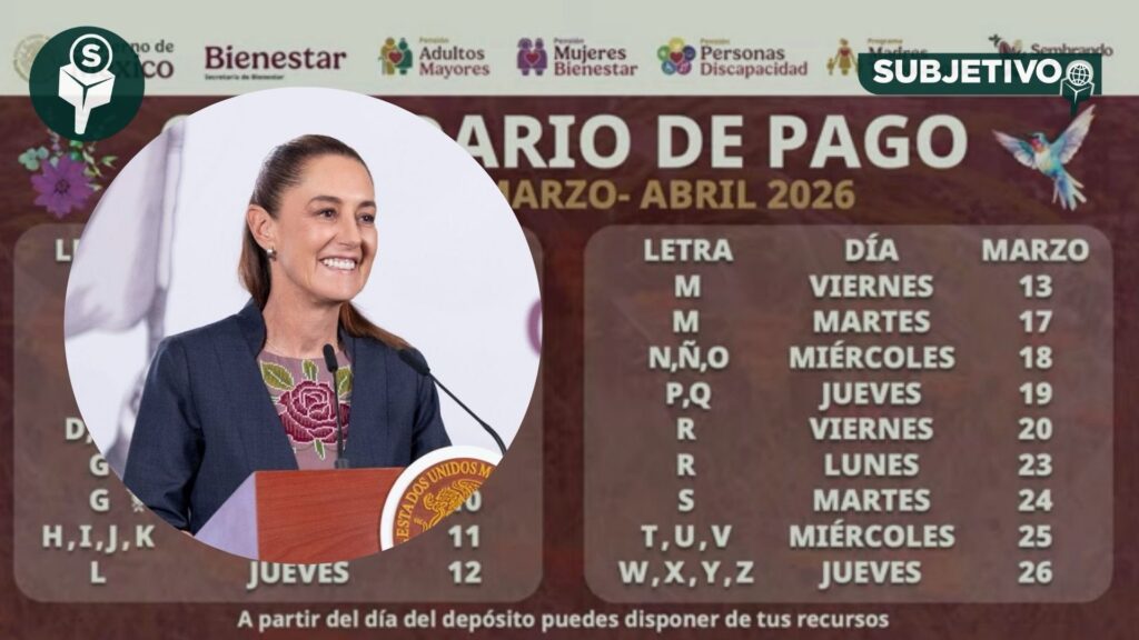 Pago Bienestar marzo-abril 2026: fechas por letra y calendario oficial