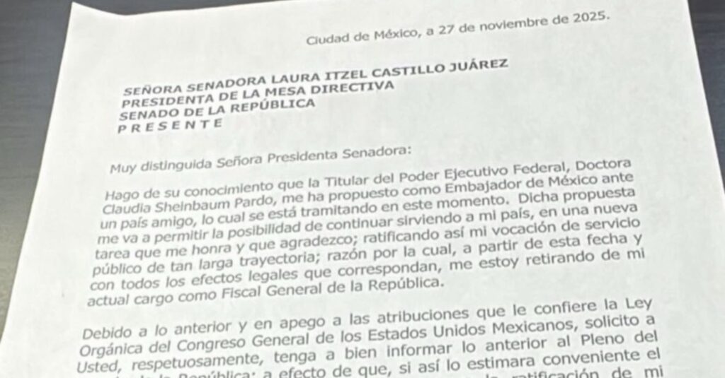 El Senado aprobó con 74 votos la renuncia de Gertz Manero. Sheinbaum lo propone como embajador y arranca el proceso constitucional para elegir nuevo Fiscal.